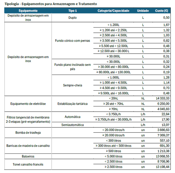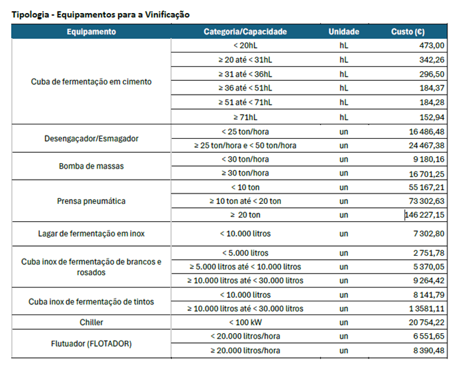 - Aquisição de máquinas e equipamentos novos, utilizados no âmbito da vinificação e da armazenagem, tratamento e embalamento do vinho; e